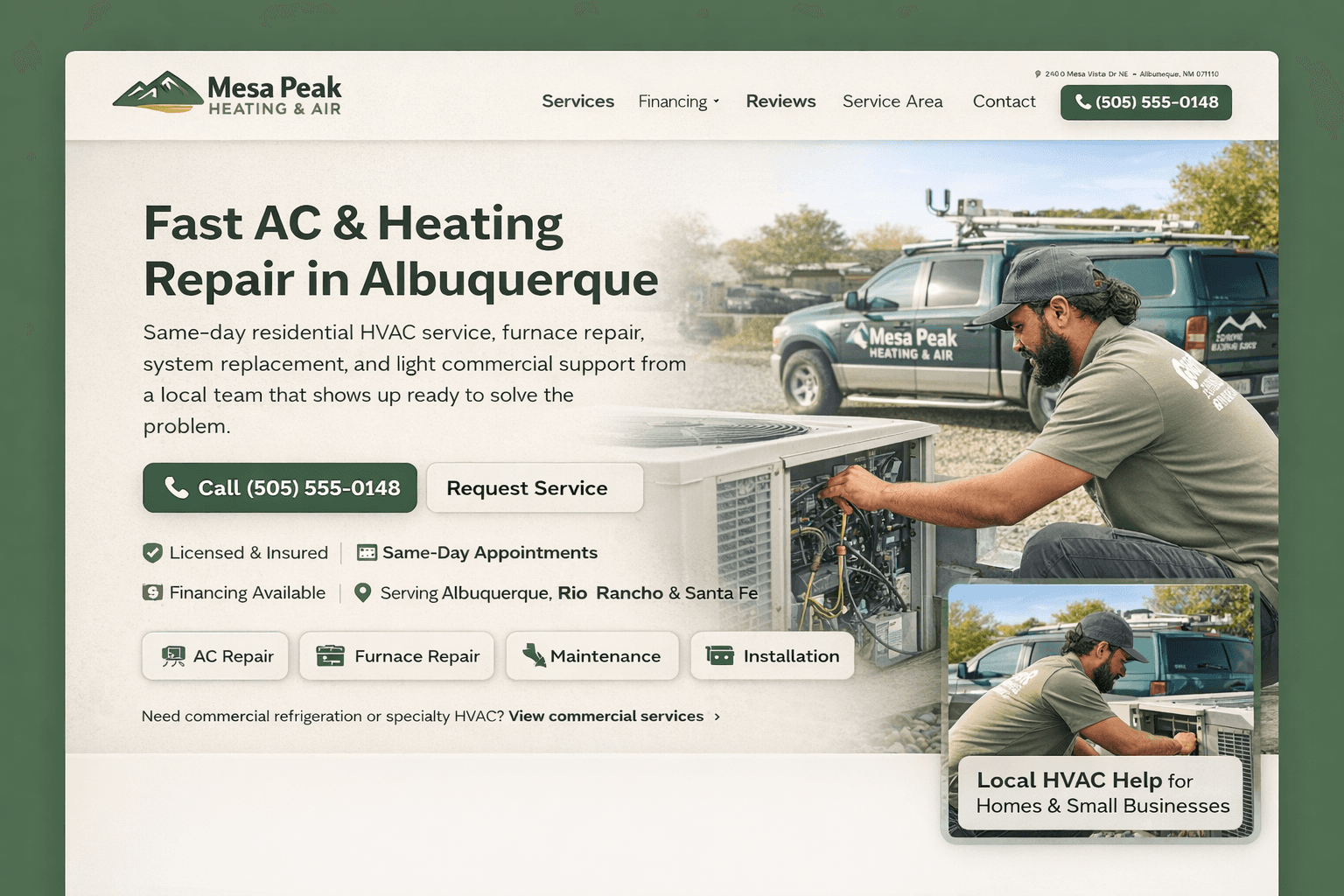 Most HVAC companies do great work, but their websites make it too easy for competitors to win the lead. Slow pages, outdated design, and unclear service information cause homeowners to leave before contacting the business.